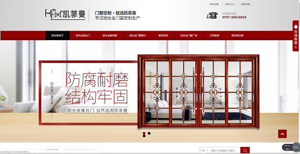 鋁合金門窗網(wǎng)站搭建網(wǎng)站建設(shè)作品賞析之佛山市南海區(qū)西樵凱菲曼鋁合金門窗廠