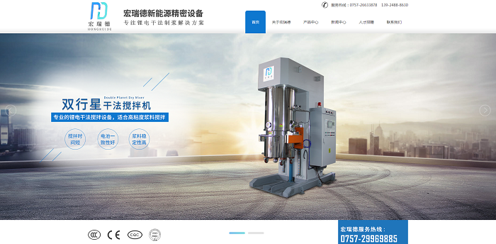 宏瑞德公司是一家致力于鋰電池干法攪拌制漿方案開發(fā)設(shè)計(jì)的高新技術(shù)企業(yè),兩年前我們開始引進(jìn)當(dāng)今世界先進(jìn)的技術(shù),目前在鋰電干法攪拌設(shè)備及干法制漿工藝方案方面我們?cè)趪?guó)內(nèi)也有知名度。宏瑞德干法攪拌機(jī)是在濕法攪拌工藝基礎(chǔ)上的極度提升,也是在鋰電池行業(yè)中有著特殊效果和高性能電池占領(lǐng)市場(chǎng)及迅速發(fā)展的主要設(shè)備。它對(duì)鋰電池的各項(xiàng)數(shù)據(jù)和性能升級(jí),并對(duì)市場(chǎng)開發(fā)有著重要的地位。干法攪拌機(jī)在攪拌過程中整個(gè)攪拌工藝對(duì)鋰電行業(yè)的含義是非常重要的,我們?cè)跀嚢韫に囍袝?huì)提供精密設(shè)計(jì)的工藝流程時(shí)間,四個(gè)半小時(shí)可以走完干法正極漿料全過程,攪出來的漿料能達(dá)到客戶所要的理想效果。漿料穩(wěn)定,分散均勻,顆粒特別少,內(nèi)阻一致性非常好。數(shù)據(jù)顯示非常明確,在鋰電池的質(zhì)量上也有全面的提升。