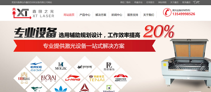 激光設備網站建設案例分享:佛山市金色鑫田自動化科技有限公司