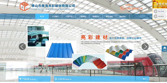 采光瓦網(wǎng)站建設(shè)案例分享:佛山市南海亮彩建材有限公司