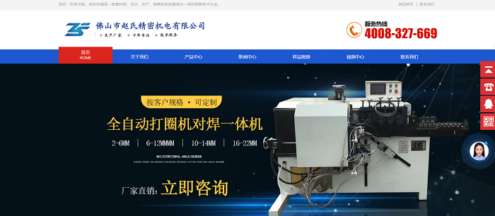 佛山市趙氏精密機電有限公司是一家研發(fā)制造銷售自動化成型、打圈對焊一體機、線材成型一體機、鋼帶成型機、法蘭機、自動成型沖孔一體機、調直機、風扇網罩整條生產線、寵物籠配套生產線、冰箱廚柜衛(wèi)浴配套生產線、展示柜整套生產線、歡迎各界客戶蒞臨指導!合作共贏、創(chuàng)造美好未來……