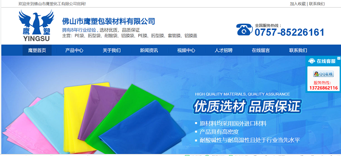 包裝材料網(wǎng)站建設(shè)作品展示:佛山市鷹塑包裝材料有限公司