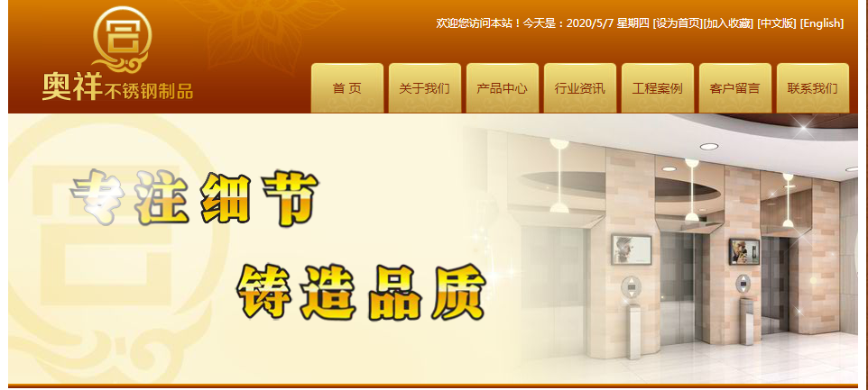 電梯裝飾板網(wǎng)站建設(shè)作品分享:佛山市奧祥不銹鋼制品有限公司