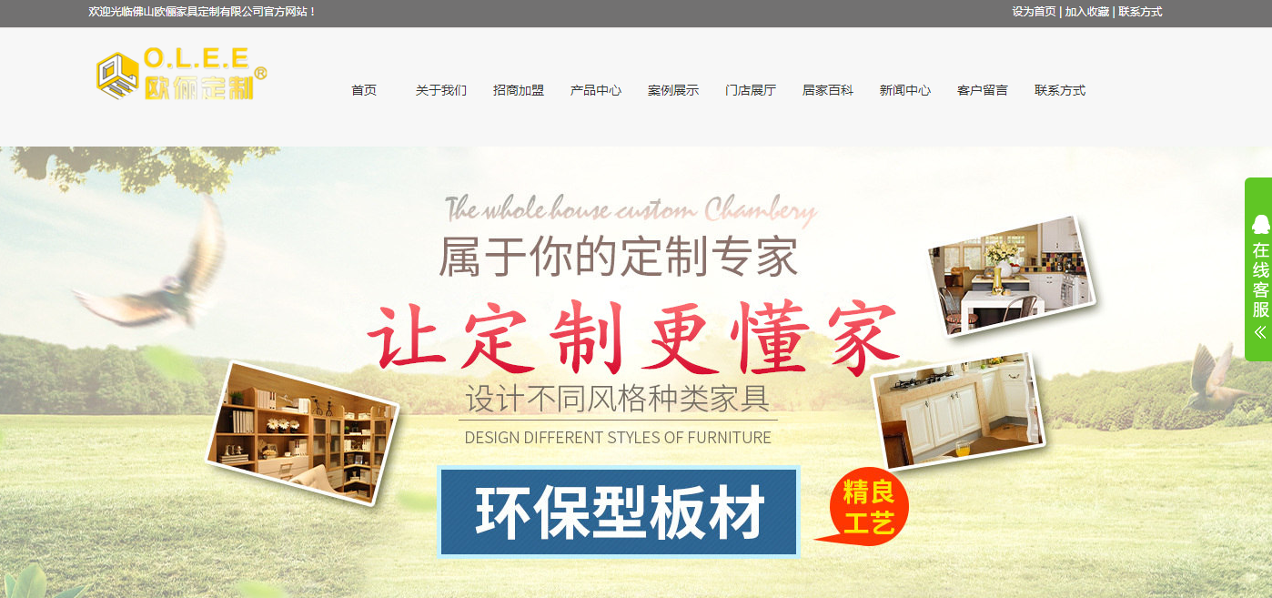 佛山市南海歐儷定制家居有限公司是一家定位于中高端客戶,全數(shù)碼機(jī)械化生產(chǎn)的現(xiàn)代化企業(yè),注冊品牌商標(biāo)為歐儷定制。公司坐落于佛山南海里水得勝工業(yè)區(qū),直營店位于南海黃岐嘉州大轉(zhuǎn)灣裝飾材料市場。公司業(yè)務(wù)主要涵蓋各類定制衣柜,廚柜,酒柜等全屋定制家具,風(fēng)格多樣,設(shè)計創(chuàng)新大膽,深受個性化市場歡迎。公司一直本著“讓定制更懂家”的理念深耕國內(nèi)定制市場,熱忱歡迎有志之士加入歐儷定制,為定制市場創(chuàng)造美好明天!