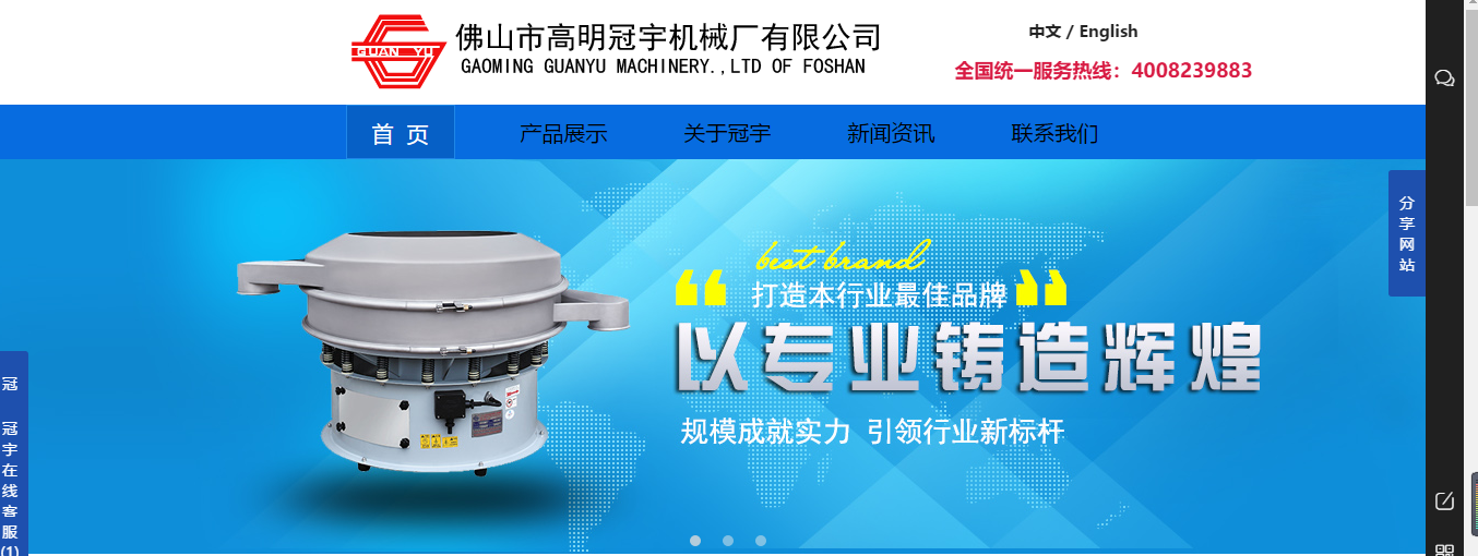 強力永磁除鐵器網站設計作品分享之:佛山市高明冠宇機械廠有限公司