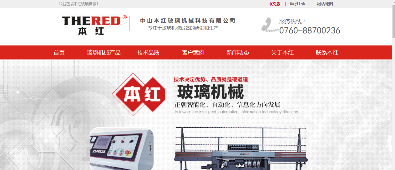 今天讓我們一起來(lái)分享一下玻璃機(jī)械網(wǎng)站設(shè)計(jì)案例:中山本紅玻璃機(jī)械科技有限公司