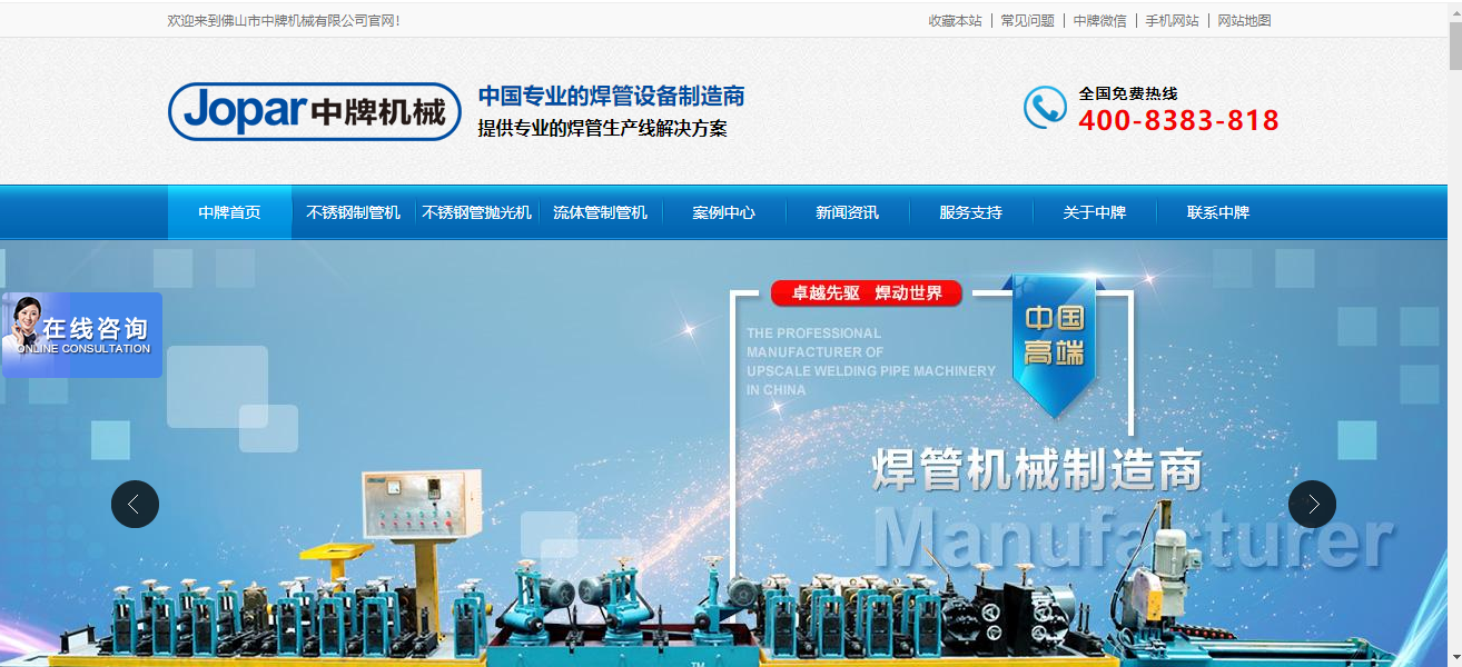 今天讓我們一起來分享一下制管機(jī)設(shè)備網(wǎng)站建設(shè)作品: 佛山市中牌機(jī)械有限公司