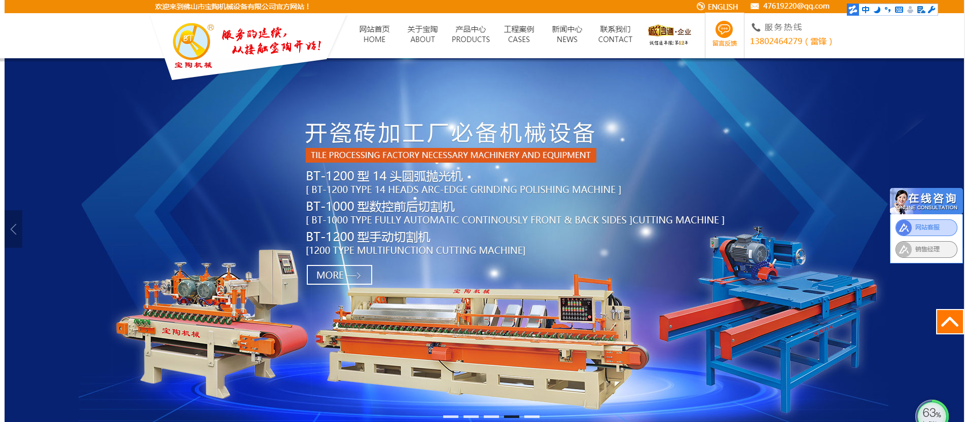 瓷磚切割機網(wǎng)站建設(shè)哪家好:佛山市寶陶機械設(shè)備有限公司是制造各類:陶瓷、石材、巖板、陶瓷大板深加工機械設(shè)備的知名廠家,現(xiàn)為佛山機械行業(yè)協(xié)會誠信會員。始建于2005年,經(jīng)過16年的專研與發(fā)展現(xiàn)擁有多名資深的專業(yè)技術(shù)人員及高級工程師,完善的配套管理和優(yōu)質(zhì)的售后服務(wù).產(chǎn)品質(zhì)量過硬、售后服務(wù)完善,品種系列規(guī)格齊全。主要產(chǎn)品有:圓弧機拋光機、石材線條機拋光機、多功能拋光機、平面拋光機、智能水刀、磨邊機、帶數(shù)控自動切割機、全自動干切線等各種陶瓷深加工設(shè)備。產(chǎn)品遍及全國各省、市、區(qū)、并遠(yuǎn)銷歐美、東南亞等多個國家和地區(qū)。