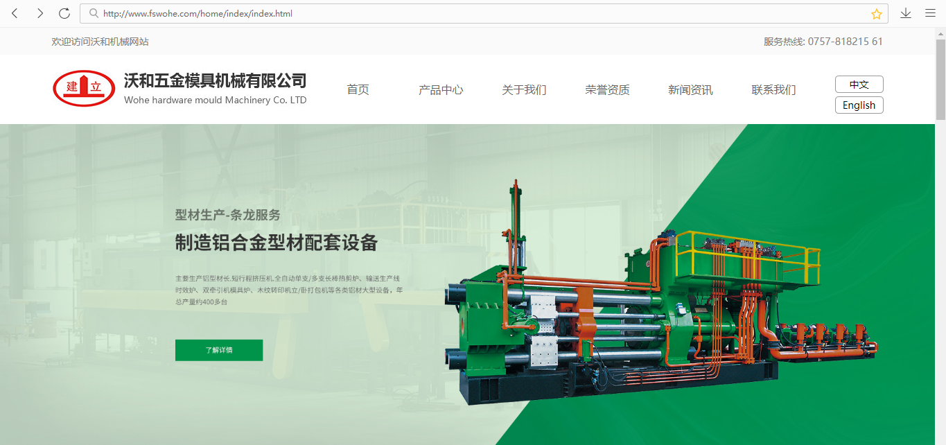 今天讓我們一起來(lái)分享一下五金模具機(jī)械網(wǎng)頁(yè)設(shè)計(jì)作品:廣東省佛山市南海沃和五金模具機(jī)械有限公司創(chuàng)立于2005年.座落于全國(guó)著名鋁材之都一(中國(guó)廣 東)佛山南海區(qū)大瀝鎮(zhèn)是-家集研制、開發(fā)、生產(chǎn)、制造鋁合金型材配套設(shè)備的企業(yè)。隨著生產(chǎn)規(guī)模的不斷擴(kuò)展,發(fā)展到現(xiàn)在有員工100多人總占地面積1萬(wàn)多平方米。