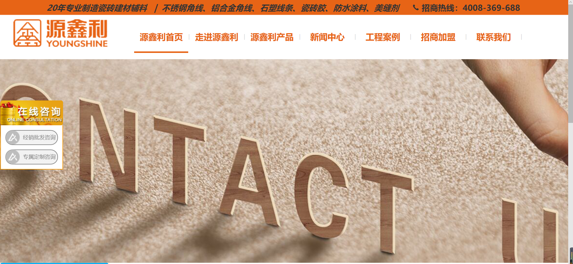 今天讓我們一起來分享一下美縫劑網(wǎng)站推廣案例:佛山市國鋁五金制品有限公司創(chuàng)始于2000年,位于全國知名陶瓷之鄉(xiāng)佛山三水,是國內規(guī)模較大的建材裝飾輔料的制造商與銷售商,一直致力于不繡鋼/鋁合金/石塑裝飾修邊線條以及瓷磚膠/瓷磚背膠/防水涂料/美縫劑等防水產品的研發(fā)、生產、銷售及系統(tǒng)服務為一體的國內知名建材企業(yè)。公司產品獲得國家發(fā)明專利及實用新型專利等一百多項,擁有源鑫利、富麗家、好望閣等知名商標,并評為國家高新技術企業(yè)。