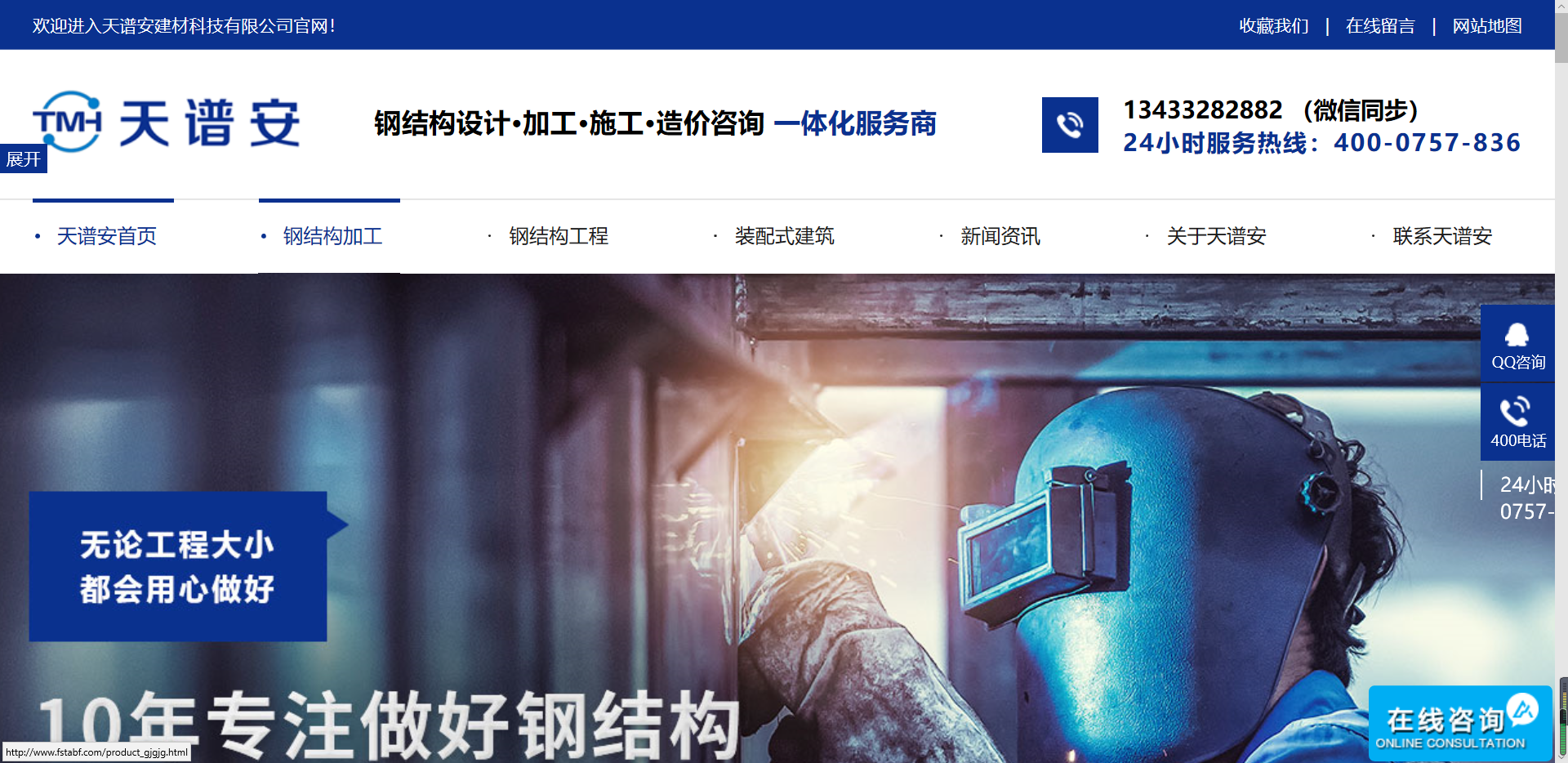 今天讓我們一起來分享一下鋼結(jié)構(gòu)加工網(wǎng)站設(shè)計作品:天譜安自有兩個工廠,共30000平方米的全產(chǎn)業(yè)鏈生產(chǎn)基地,基地?fù)碛袖摻Y(jié)構(gòu)全自動生產(chǎn)線,引進(jìn)H型鋼自動組立機(jī)、埋弧焊和粉末噴涂設(shè)備等數(shù)十臺精密加工設(shè)備,加工車間包括切割車間、埋弧焊車間、組裝車間和噴漆車間,車間配備多名質(zhì)檢專員,嚴(yán)控品質(zhì)。鋼結(jié)構(gòu)年產(chǎn)量超過10000噸,確保準(zhǔn)時交貨。公司與各大院校長期戰(zhàn)略合作,擁有逾30人的技術(shù)生產(chǎn)團(tuán)隊,為客戶深化圖紙、優(yōu)化方案和控制成本,確保每一件產(chǎn)品成本低、工期短、質(zhì)量優(yōu)。公司專人對客戶一對一跟蹤服務(wù),及時響應(yīng),及時解決。