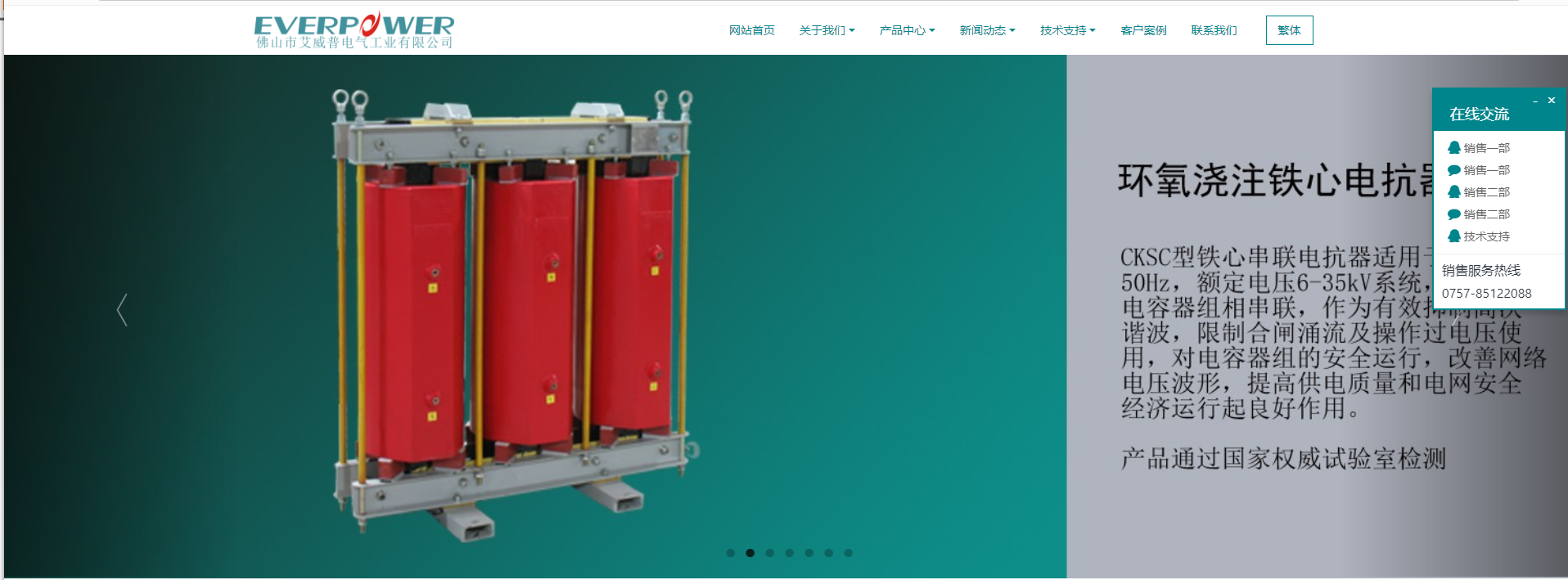 今天讓我們一起來分享一下電抗器定制網(wǎng)站案例:佛山市艾威普電氣工業(yè)有限公司(中外合資)是一家專業(yè)從事電抗器生產(chǎn)、研發(fā)、銷售為一體的公司,主要生產(chǎn)CKSG(CLKSG)系列低壓串/并聯(lián)電抗器、LKSG濾波電抗器、CKSC高壓環(huán)氧澆注電抗器,BKDG,BKSC單/三相電抗器、BKS鐵路專用并聯(lián)電抗器,整流、變頻、節(jié)能、補償、濾波等行業(yè)用各種隔離/自耦變壓器,及D16系列50Hz、60Hz單相柱上式變壓器,容量5KVA~500KVA, 采用美國ANSI和IEC76標(biāo)準(zhǔn)設(shè)計生產(chǎn),產(chǎn)品出口美國、中南美、東南亞、非洲等其它國家,具有二十多年的出口經(jīng)驗。
