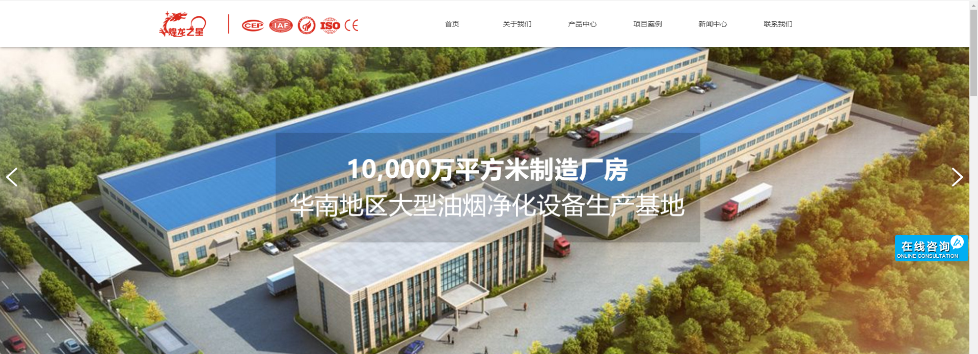 今天讓我們一起來分享一下油煙凈化設備網(wǎng)站建設作品:煌龍環(huán)保是高新技術企業(yè),廣東環(huán)境保護產(chǎn)業(yè)協(xié)會會員,產(chǎn)品獲得中國環(huán)境保護產(chǎn)品認證證書,截止2018年底公司獲得過國家授權專利10余件,并多次承擔市、區(qū)環(huán)保科技項目的研發(fā),公司現(xiàn)有超過10000平方米的現(xiàn)代化廠房,油煙凈化器產(chǎn)能超過1萬臺。