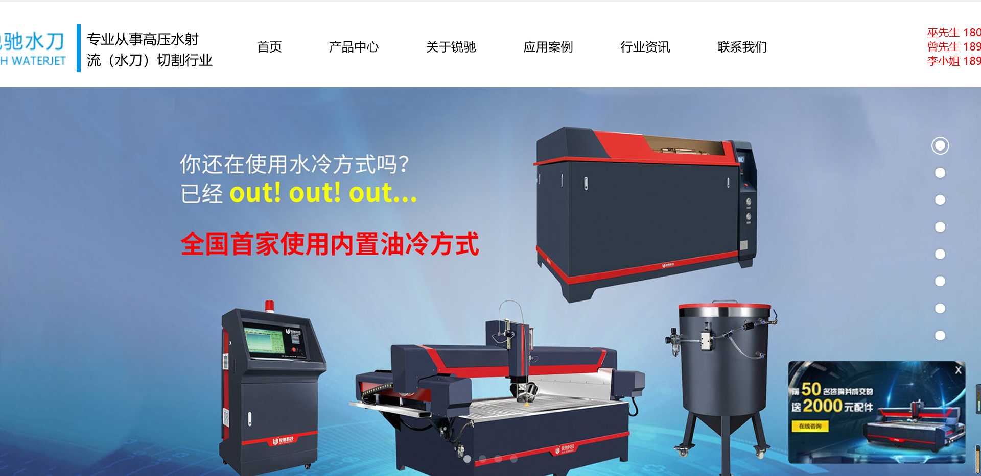 今天讓我們一起來分享一下水刀網站推廣作品: 銳馳水刀一直致力于水射流切割技術及設備配件的開發(fā)與生產,專業(yè)為客戶提供最具優(yōu)勢的產品與服務。公司產品不僅在國內銷售領先,且遠銷印尼、加拿大、南美、中東、東南亞等國家和地區(qū),其中包括眾多國內外知名水射流設備商、各地區(qū)設備服務商、貿易商、以及大型加工企業(yè)、加工廠等。其獨特、專業(yè)的技術和精細加工的優(yōu)良品質隨著新型制造業(yè)的需求和新材料應用領域的飛速拓展,已為愈來愈多的行業(yè)所采用。每一款銳馳生產出售的產品都經過一系列專業(yè)的質量檢測工序,我們堅持讓我們的產品成為您最可信賴的選擇,公司產品各項技術含量現在都處于國際領先地位。