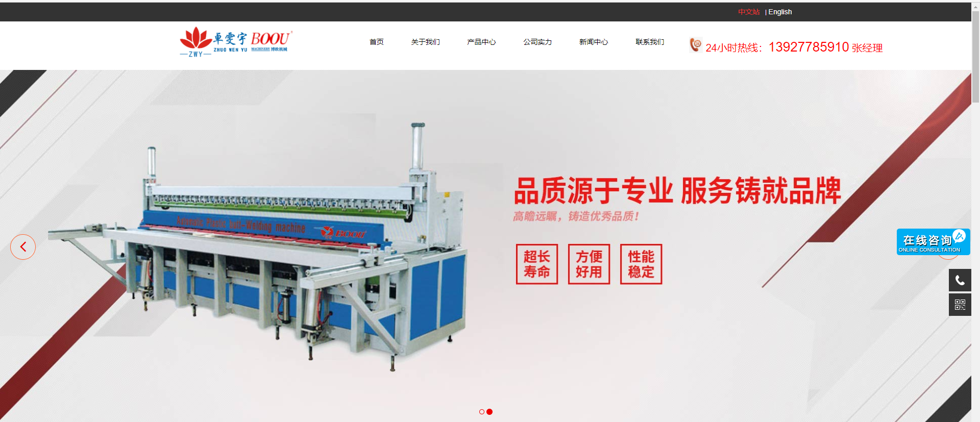 今天讓我們一起來(lái)分享一下:佛山市卓雯宇塑料機(jī)械科技有限公司(BOOU)原為廣東博鷗科技有限公司。1998年研發(fā),2002年始投入生產(chǎn),2006年遷至里水鎮(zhèn),2017年8月更名為佛山市卓雯宇塑料機(jī)械科技有限公司。是國(guó)內(nèi)維e 一家20年來(lái)專注研發(fā)、設(shè)計(jì)、生產(chǎn)、銷(xiāo)售一體的高科技企業(yè)。主要生產(chǎn):碰焊機(jī)、折彎?rùn)C(jī)、開(kāi)料機(jī)等全自動(dòng)塑料板加工設(shè)備。產(chǎn)品以自動(dòng)化高、性能穩(wěn)定、好用耐用可與同類(lèi)進(jìn)口設(shè)備蓖美,產(chǎn)品遍布全國(guó)各地,遠(yuǎn)銷(xiāo)東南亞國(guó)家地區(qū),廣泛應(yīng)用于PP、PVC、PE等工程塑料板加工行業(yè)領(lǐng)域,頗受專業(yè)人士的青睞。