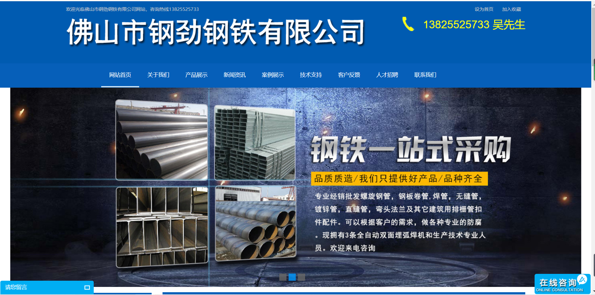 今天讓我們一起來分享一下鍍鋅管網(wǎng)站推廣案例:佛山市鋼勁鋼鐵有限公司,注冊資金500萬元,公司總部坐落于佛山市順德區(qū)樂從鋼鐵世界C1區(qū)鋼鐵世界大道5號四樓。貨場有型材庫,板材庫,管材庫,建材庫,管件庫,物流信息部,庫存鋼材充足,主要經(jīng)營:工字鋼,H型鋼,螺紋鋼,鍍鋅管,鋼板,槽鋼,角鋼,焊管,方管,鋼絞線,聲測管,不銹鋼等等。