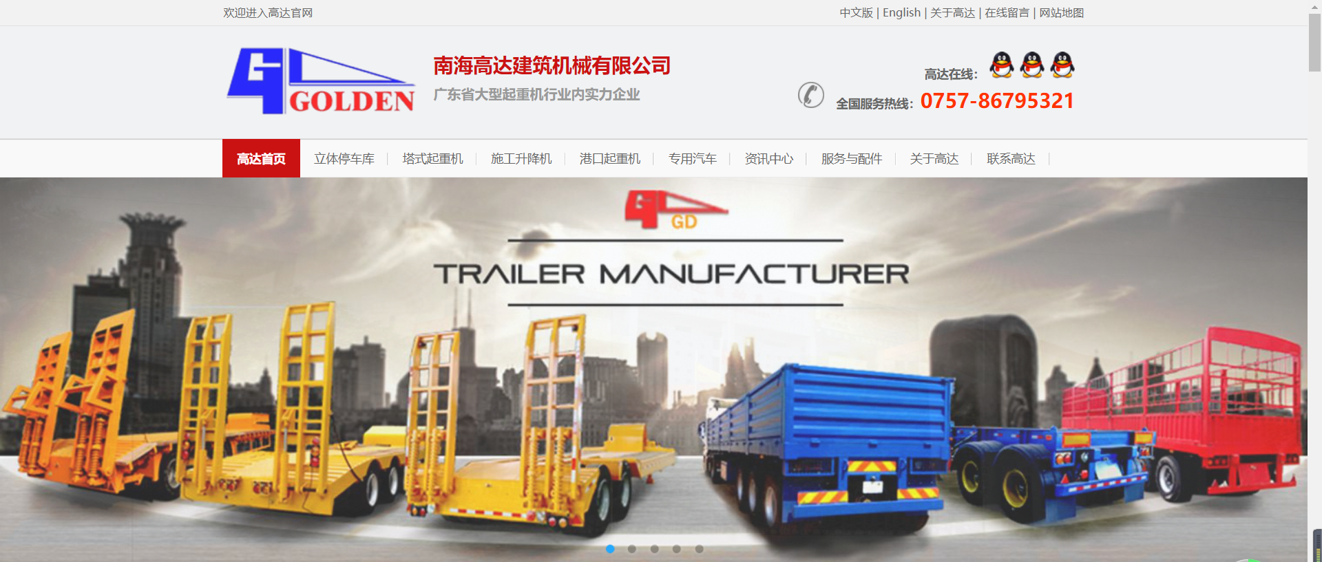 今天讓我們一起來分享一下塔式起重機(jī)網(wǎng)站設(shè)計(jì)作品:佛山市南海高達(dá)建筑機(jī)械有限公司成立于2004年,憑借敏銳的全球化市場觸覺,堅(jiān)持以科技為先導(dǎo),經(jīng)過10多年的發(fā)展,已經(jīng)成長為華南地區(qū)較大的機(jī)械設(shè)備制造廠商之一,公司是國家審核批準(zhǔn)許可的專業(yè)生產(chǎn)、制造、安裝維修塔式起重機(jī)、施工升降機(jī)、橋(門)式起重機(jī)、自動(dòng)化停車設(shè)備、港口碼頭裝卸機(jī)械設(shè)備等系列產(chǎn)品的專業(yè)特種設(shè)備和大型鋼結(jié)構(gòu)制作生產(chǎn)廠家。