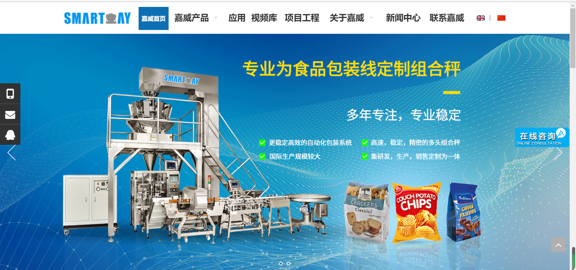 今天讓我們一起來(lái)分享一下定量包裝秤網(wǎng)站推廣作品:廣東嘉威包裝機(jī)械有限公司是一家專業(yè)研發(fā),設(shè)計(jì)和制造定量包裝秤,檢測(cè)設(shè)備和提供整體包裝解決方案的廠家。公司一貫以市場(chǎng)需求為導(dǎo)向,秉承技術(shù)為先,品質(zhì)取勝的理念,給客戶提供最優(yōu)質(zhì)的自動(dòng)定量包裝方案。