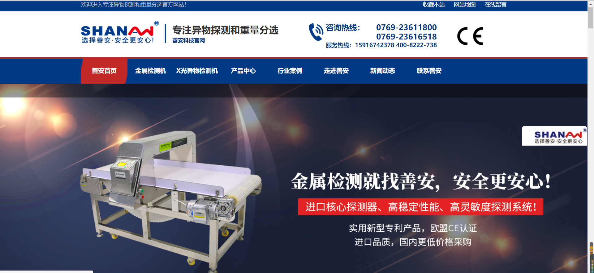 金屬檢測機網(wǎng)站建設(shè)案例分享之 廣東善安科技有限公司
