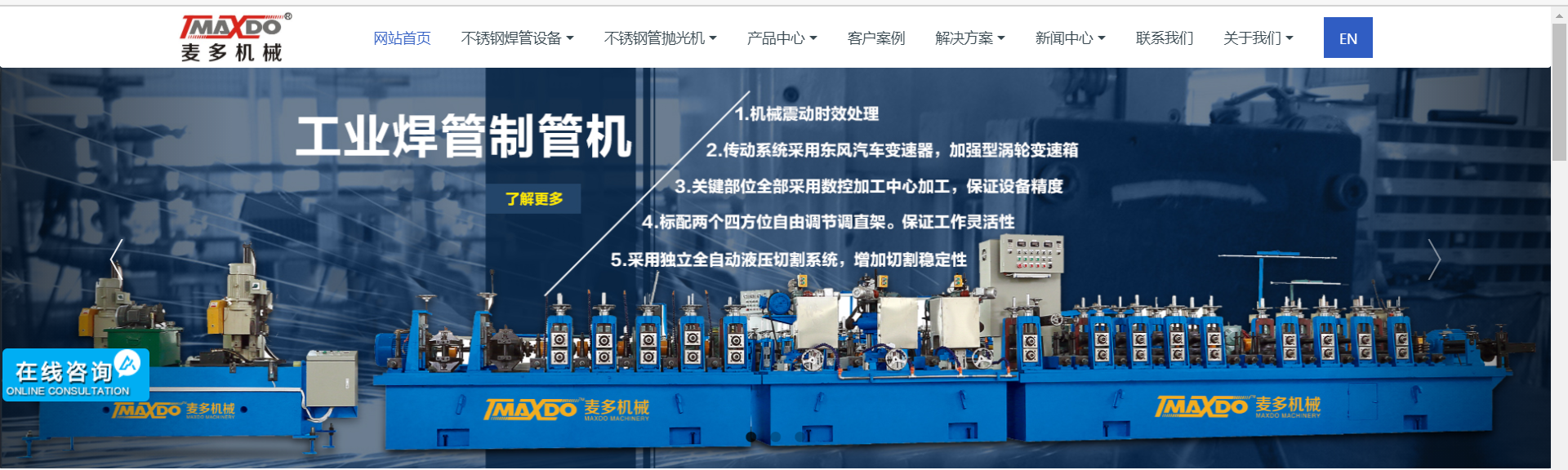 不銹鋼焊管機械設備網(wǎng)站建設哪家好呢?今天讓我們一起來分享一下不銹鋼焊管機械設備網(wǎng)站建設作品:佛山市麥多機械有限公司