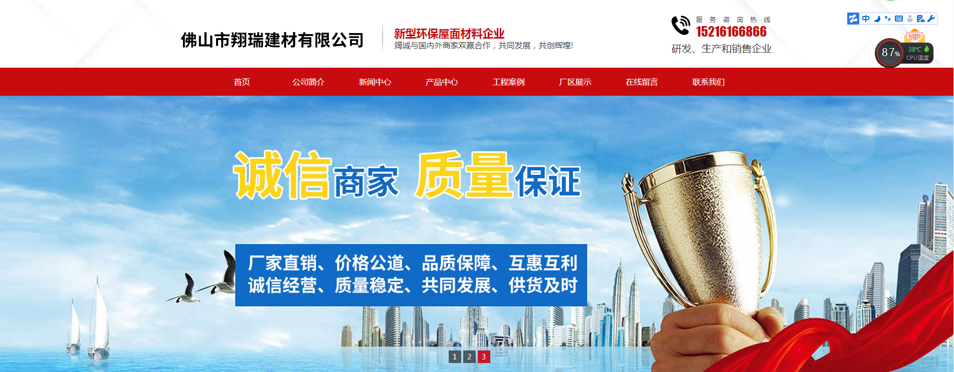 佛山市翔瑞建材有限公司是一家致力于新型環(huán)保屋面材料研發(fā)、生產和銷售的企業(yè)。主要產品有:合成樹脂瓦、PVC防腐瓦、透明瓦、FRP采光板、PC耐力板及配套配件等。公司出產的同類型產品在市場上更具有可比性,產品質量更好,使用壽命更長,光澤度更亮等特點。特別是用新型材料生產出來的環(huán)保屋面瓦比傳統(tǒng)的鐵皮瓦,在隔熱、減霧、減噪、耐酸堿腐蝕性和防火防紫外線等功能方面更具有優(yōu)勢,在綠色環(huán)保和建筑節(jié)能方面更符合國家要求。我們的產品被廣泛應用于雨棚、車棚、陽光房、工業(yè)廠房、室內外裝飾、公共基礎設施及政府扶持的評改坡工程等項目中。