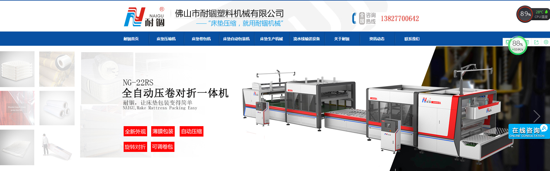 佛山市耐錮塑料機械有限公司成立于2004年,經(jīng)過多年改革升級,前身名為佛山市耐錮塑料包裝材料廠2016年更名為佛山市耐錮塑料機械有限公司,現(xiàn)占地面積20000多平米,擁有10余人的研發(fā)團隊,專業(yè)研發(fā)與生產(chǎn)全自動床墊壓縮包裝設(shè)備、床墊卷包機械、床墊印刷包裝膜、床墊壓縮包裝袋,PVC/PE薄膜等多種產(chǎn)品,為床墊企業(yè)打造高競爭力的包裝而努力創(chuàng)新。