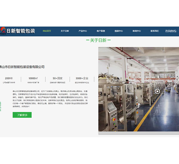 給袋式包裝機網(wǎng)站建設案例分享:佛山市日新智能包裝設備有限公司,位于廣東省佛山市獅山,毗鄰佛山機場與佛山高鐵站,交通便利。日新智能專注于設計生產(chǎn)制造各類自動化包裝設備,枕式包裝機,立式包裝機,給袋式包裝機,裝盒機,灌裝機等產(chǎn)品。 我們嚴格控制產(chǎn)品質(zhì)量,我們秉承質(zhì)量就是我們的生命力。我們致力于創(chuàng)新,我們相信創(chuàng)新才是我們的未來,創(chuàng)新帶我們走的更遠。我用心去做好售后服務,我們的每一個客戶都是我們朋友,售后無止境,服務好每一個朋友。 歡迎各行各業(yè)的朋友蒞臨日新指導參觀,共同進步!
