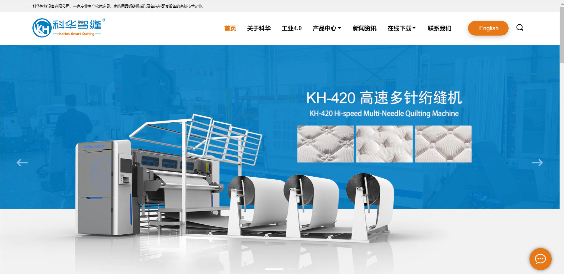 科華智縫設(shè)備有限公司,一家專業(yè)生產(chǎn)軟體床具、家紡用品絎縫機械以及各床墊配套設(shè)備的高新技術(shù)企業(yè)。