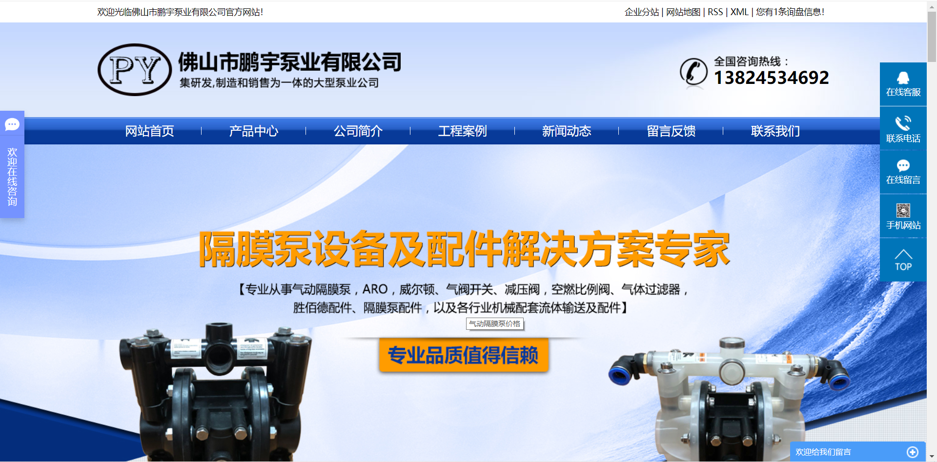 隔膜泵設(shè)備網(wǎng)站建設(shè)案例:佛山市鵬宇泵業(yè)有限公司