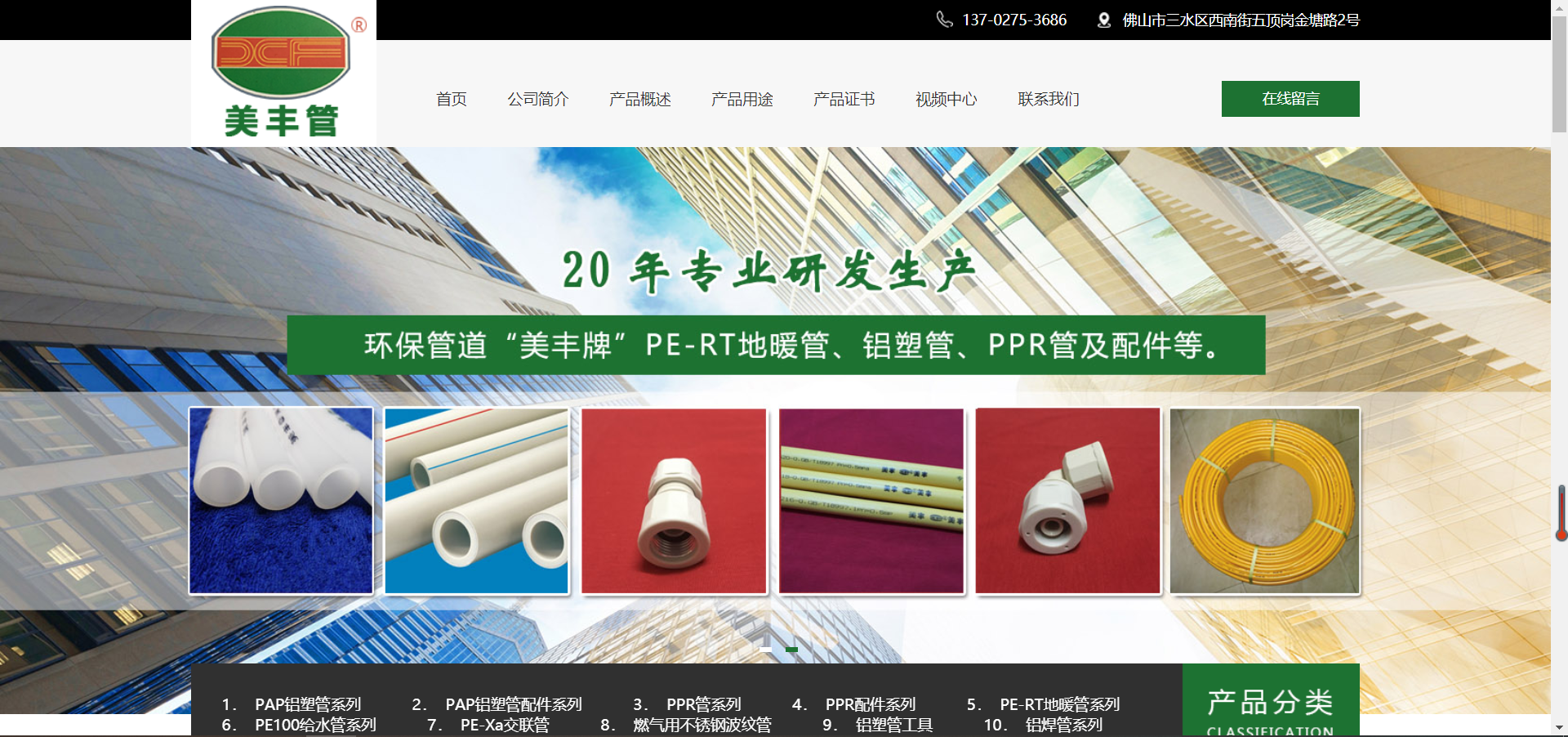 佛山市三水美豐鋁塑復(fù)合管有限公司創(chuàng)辦于1999年,工廠坐落于廣東佛山市三水區(qū)西南街五頂崗金塘路2號(hào)。用先進(jìn)的生產(chǎn)技術(shù)和設(shè)備,專業(yè)生產(chǎn)環(huán)保管道“美豐牌”鋁塑復(fù)合管(包括冷熱水用管、燃?xì)鈱S霉?、壓縮氣體輸送管)、專用地暖PE-RT管、工程用PP-R管、PE100燃?xì)庥霉芎徒o水管、特殊領(lǐng)域用鋁焊管及(鋁塑管、PERT管)專用塑料合金管件。生產(chǎn)過(guò)程嚴(yán)格執(zhí)行ISO9001質(zhì)量體系,確保產(chǎn)品達(dá)到國(guó)家檢測(cè)要求并符合歐美先進(jìn)國(guó)家同類產(chǎn)品質(zhì)量標(biāo)準(zhǔn)。