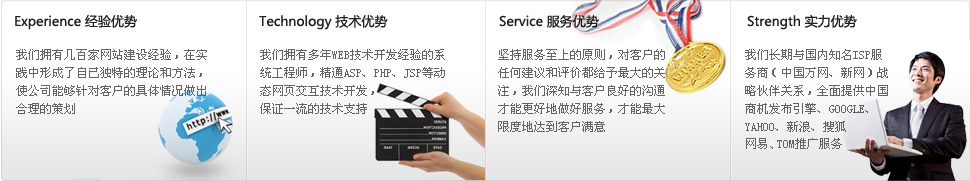 - 技術(shù)優(yōu)勢(shì):我們擁有多年WEB技術(shù)開(kāi)發(fā)經(jīng)驗(yàn)的系統(tǒng)工程師,精通ASP、PHP、JSP等動(dòng)態(tài)網(wǎng)頁(yè)交互技術(shù)開(kāi)發(fā),保證一流的技術(shù)支持。
