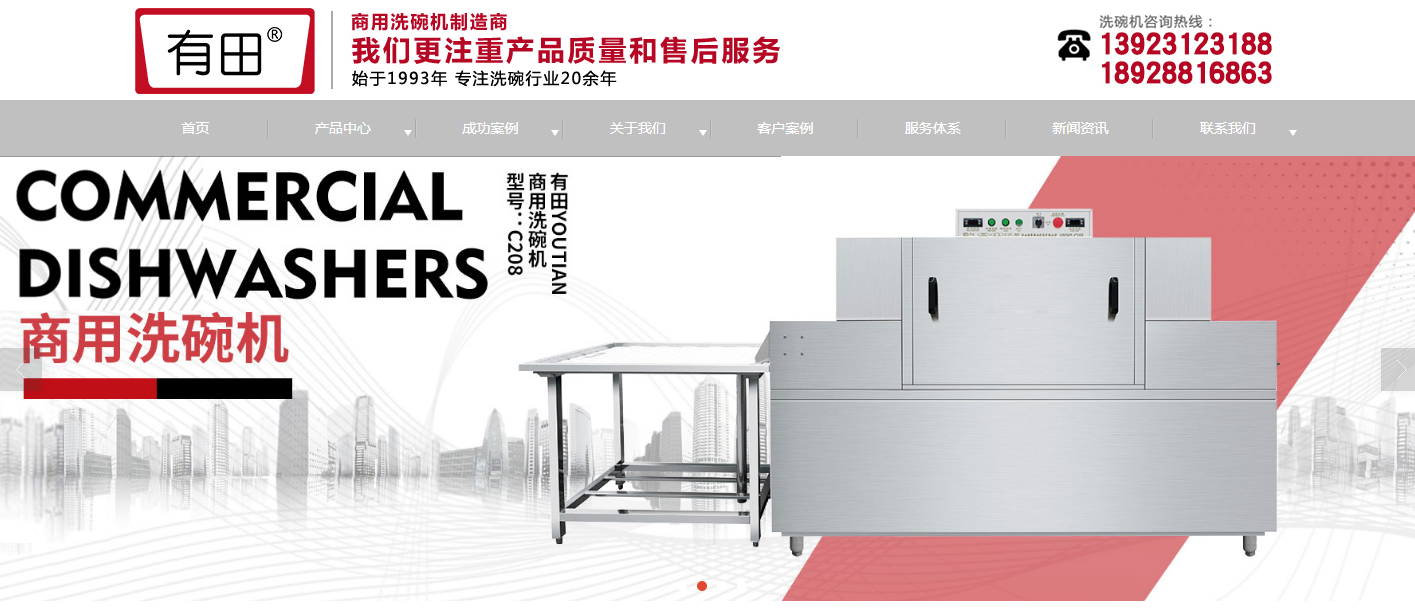 商用洗碗機(jī)網(wǎng)站建設(shè)作品分享:佛山市有田商用廚房設(shè)備有限公司