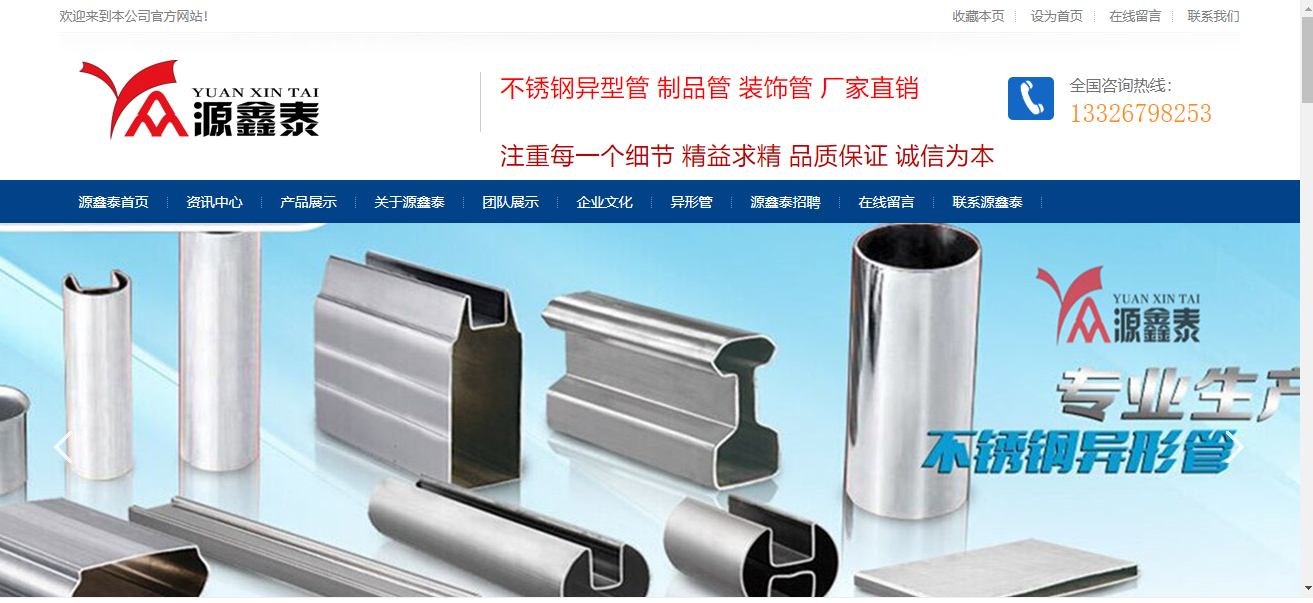 今天讓我們一起來分享一下不銹鋼異型管網(wǎng)站設計案例:廣東省佛山市源鑫泰不銹鋼有限公司