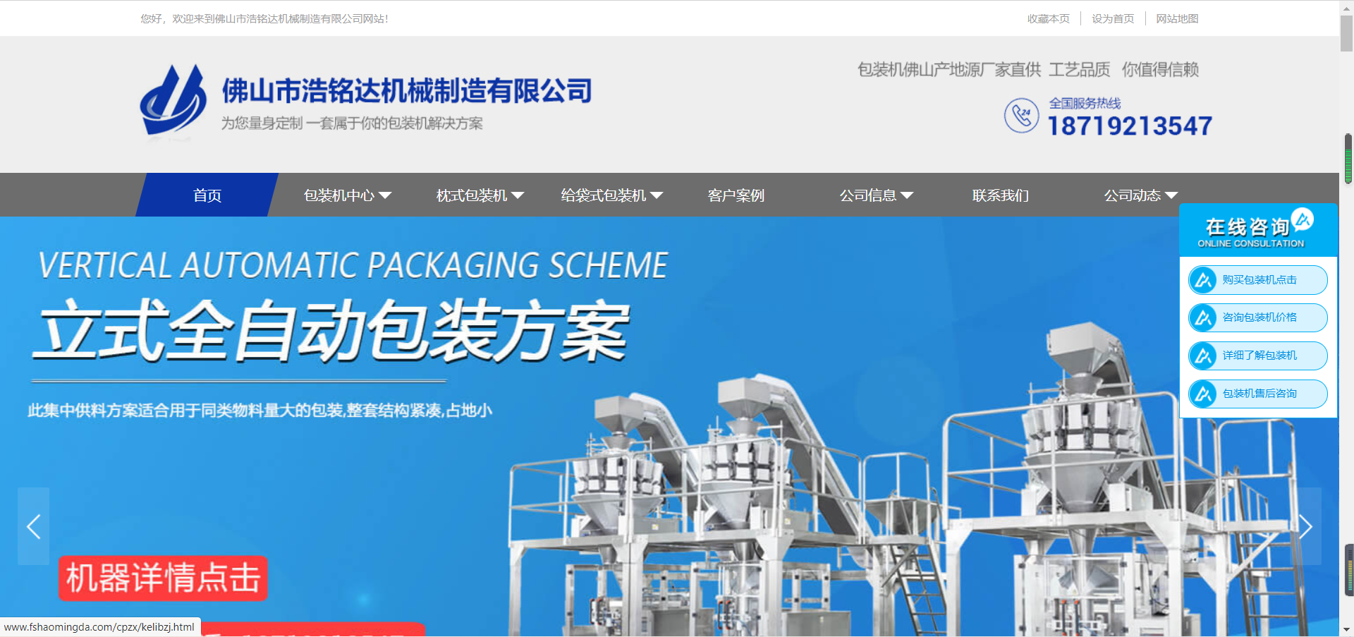 今天讓我們一起來分析一下包裝機(jī)械網(wǎng)站推廣案例:佛山市浩銘達(dá)機(jī)械制造有限公司是一家專業(yè)生產(chǎn)、制造、銷售和售后服務(wù)為一體化的包裝機(jī)械公司。公司堅(jiān)持“以質(zhì)量求生存,以信譽(yù)求發(fā)展”的經(jīng)營理念。生產(chǎn)的自動(dòng)包裝機(jī)具有設(shè)計(jì)合理,操作簡便等特點(diǎn)。產(chǎn)品廣泛應(yīng)用于食品、化工、日用品,五金零件等的包裝行業(yè)。本公司憑著“誠信為本”的精神。開拓創(chuàng)新,致力于提供優(yōu)良的包裝機(jī)械設(shè)備,為客戶創(chuàng)造價(jià)值,與您一起成長。