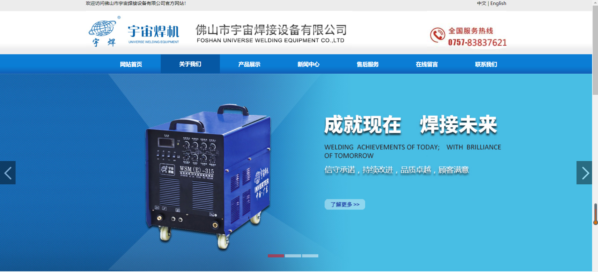 彎管機網站建設案例分享之佛山市宇宙焊接設備有限公司