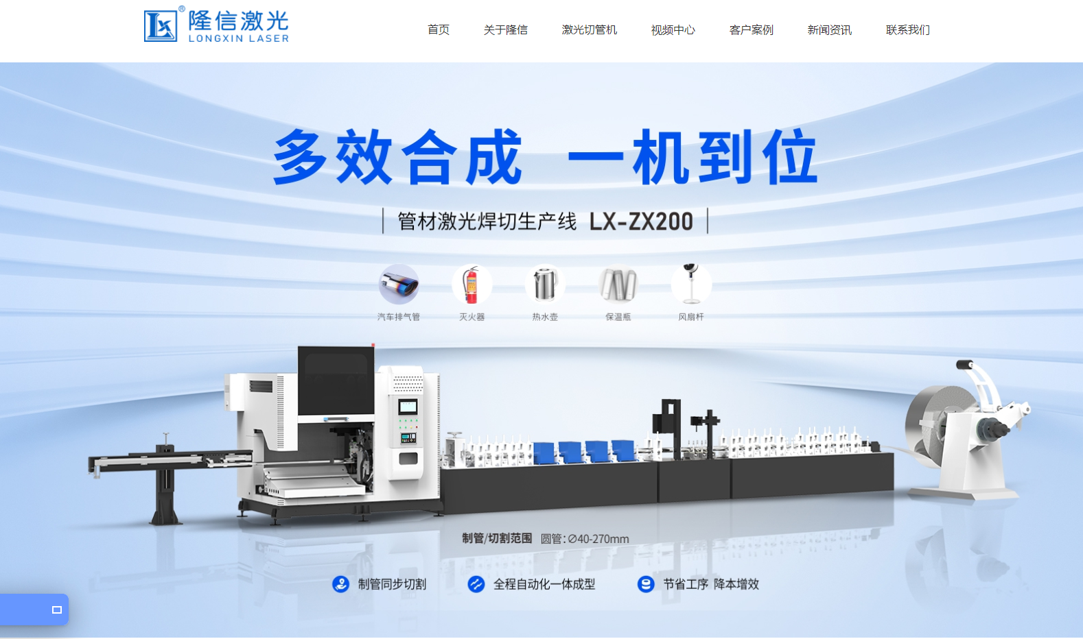 廣東隆信激光智能裝備有限公司(以下簡稱"隆信激光"),隆信品牌始于2008年,至今累計超過14年行業(yè)切管經(jīng)驗?,F(xiàn)總部坐落于南海,是一家集設(shè)計、制造、銷售于一體專業(yè)從事金屬管材類切割設(shè)備的企業(yè)。隆信激光的主營業(yè)務(wù)是為客戶提供可靠、智能、省人工的整套全自動化金屬管材切割加工設(shè)備,產(chǎn)品包括:多功能全自動激光切管機、圓管多功能全自動激光切管機、圓管全自動激光下料機、水管管件專用激光切割機、不銹鋼焊管線在線激光切管機等機型多達五十多種。產(chǎn)品廣泛應(yīng)用于不銹鋼管材配件、衛(wèi)浴行業(yè)、五金家具、運動器材、汽車、摩托車、電動車、自行車、空調(diào)、護欄、防盜網(wǎng)、貨架等行業(yè)。