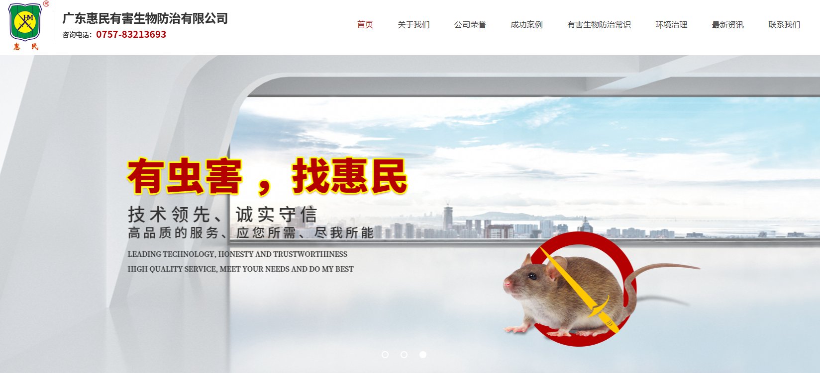 現在和大家一起分享滅鼠防治網站制作案例之廣東惠民有害生物防治有限公司。