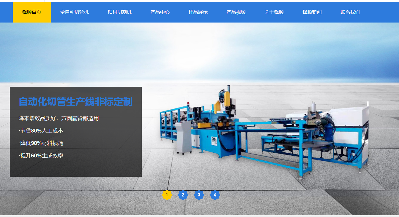 現(xiàn)在和大家一起分享自動(dòng)切管機(jī)網(wǎng)站建設(shè)案例之佛山鋒順機(jī)械科技有限公司。