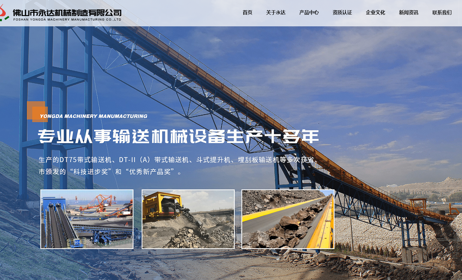 今天和大家一起賞析帶式輸送機網(wǎng)站設(shè)計案例之佛山市永達機械制造有限公司。