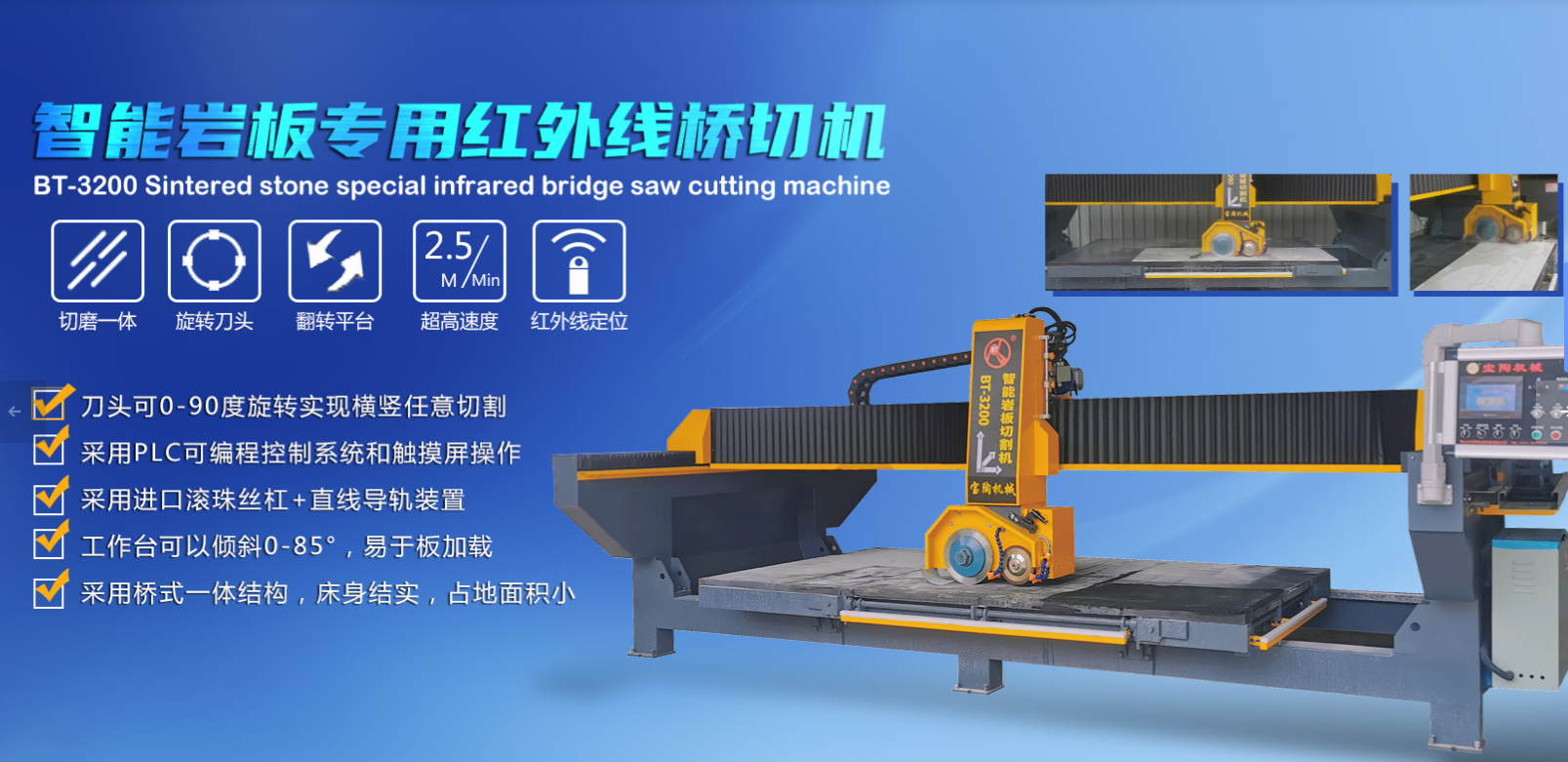 佛山市寶陶機械設(shè)備有限公司是制造各類:陶瓷、石材、巖板、陶瓷大板深加工機械設(shè)備的知名廠家,現(xiàn)為佛山機械行業(yè)協(xié)會誠信會員。始建于2005年,經(jīng)過16年的專研與發(fā)展現(xiàn)擁有多名資深的專業(yè)技術(shù)人員及高級工程師,完善的配套管理和優(yōu)質(zhì)的售后服務(wù).產(chǎn)品質(zhì)量過硬、售后服務(wù)完善,品種系列規(guī)格齊全。主要產(chǎn)品有:圓弧機拋光機、石材線條機拋光機、多功能拋光機、平面拋光機、智能水刀、磨邊機、帶數(shù)控自動切割機、全自動干切線等各種陶瓷深加工設(shè)備。產(chǎn)品遍及全國各省、市、區(qū)、并遠(yuǎn)銷歐美、東南亞等多個國家和地區(qū)。