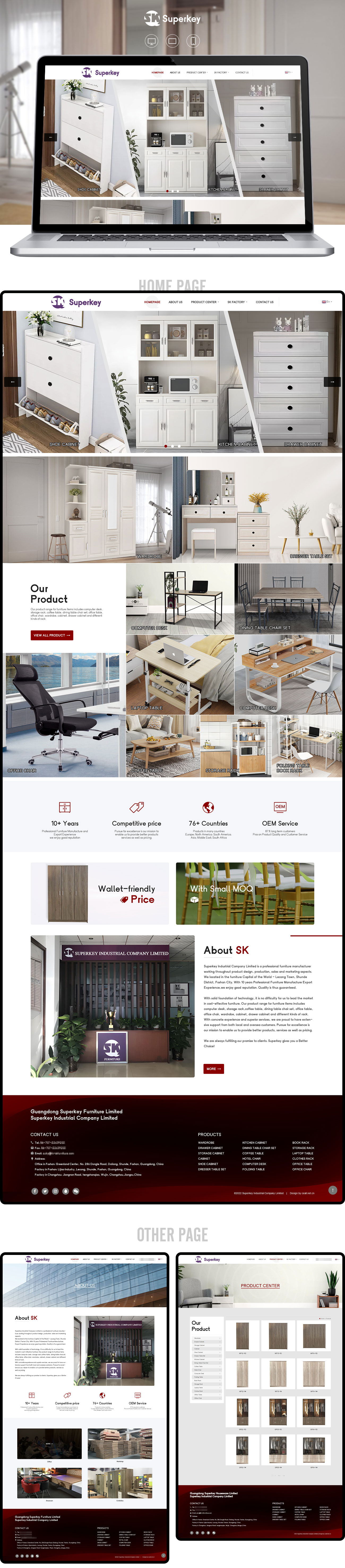 設計 SuperKey 的時候以外貿網(wǎng)站的思路入手,以專業(yè)家具產(chǎn)品展示為主,在首頁中盡可能展示全部類別的產(chǎn)品,用簡潔,現(xiàn)代的圖片及圖標去展示信息,讓外貿客戶快速了解 SuperKey 的信息。