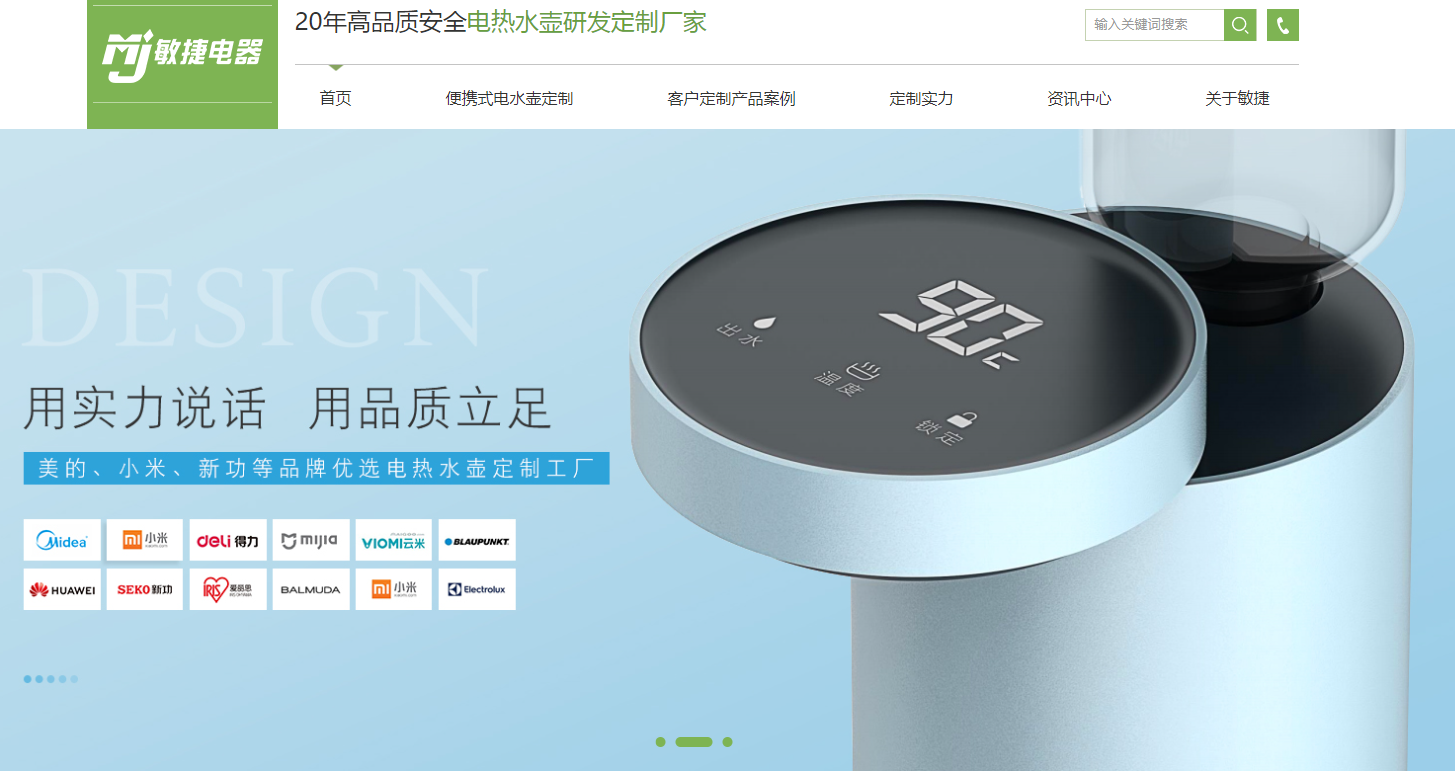 現(xiàn)在和大家一起分享電水壺網(wǎng)站設(shè)計(jì)案例之佛山市敏捷電器科技有限公司。